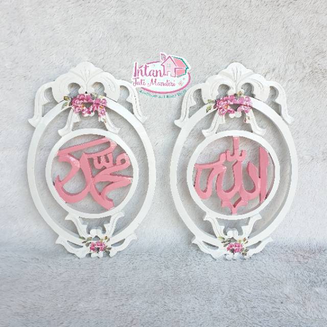 Sale Perlengkapan di Kabupaten Sumedang Kaligrafi Allah Muhammad Oval Shabby Kayu Jati Warna Putih - Pink dari Intan Jati Mandiri Kab. Bojonegoro