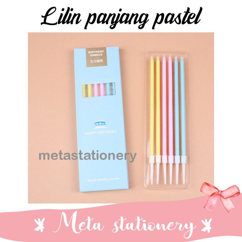 Pastel Candle / Lilin Pastel Isi 6 pcsPanjang Lilin : 14cmIsi : 6 pcsWarna : Kuning , Pink , BiruWarna pastel yang cantik cocok untuk melengkapi hiasan kue ulang tahun andaAgar Packging Lebih Aman sampai ketempat anda,Jangan Lupa Tambahkan Bubble Wrap ya di keranjang andahttps://shopee.co.id/Bubble-Wrap-untuk-Packging-Tambahan-i.1045885.6137430289Happy shop