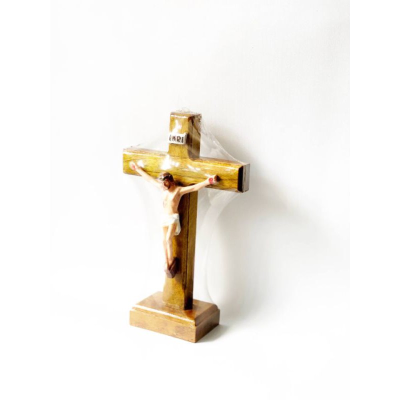 Salib duduk kayuUk 15cmMohon hubungi penjual untuk ketersediaan produk#patung #patungbundamaria #fiber #patung yesus #salib #tokorohani #salibyesus #patungkeluargakudus #lilin #lil