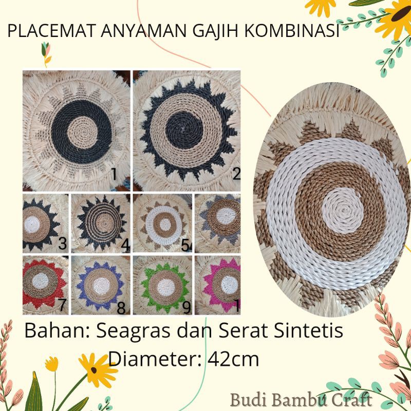 Placemate anyaman cantik cocok untuk alas kopi vas dan yang lainnya. Terbuat dari serat alam yang asli dan cantik. Ukuran diameter: 42 cm Sudah Termasuk RumbaiWarna: Kombinasi HASIL KARYA PENGRAJIN KREATIF ASLI JOGJAKARTADIBUAT DARI BAHAN-BAHAN ALAMIDIBUAT DENGAN KERAJINAN TANGAN / HOME MADE MEMPERINDAH TAMPILAN RUANGAN TAMPAK LEBIH CANTIK DAN ARTISTIK#barangantik#barangunik#kerajinanindonesia#kerajinanjogja#kerajinantangan#homemade#homesweethome#hiasanrumah#dekorasi