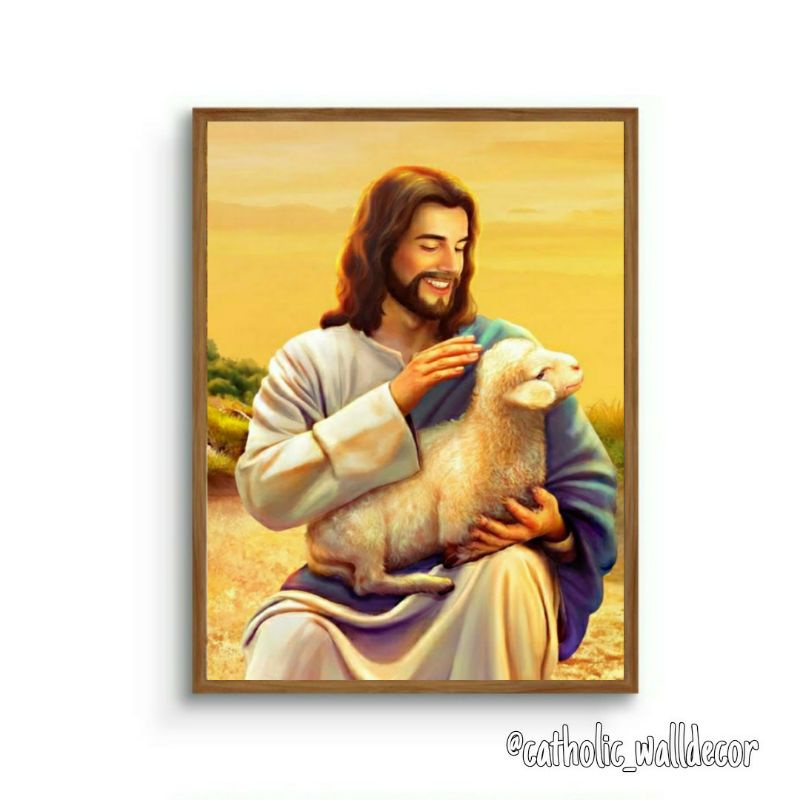 Terlaris Perlengkapan di Kabupaten Brebes Hiasan Dinding Kristen Katolik Gambar Tuhan Yesus Gembala Yang Baik 30x40cm dari Catholic_walldecor Kota Bekasi