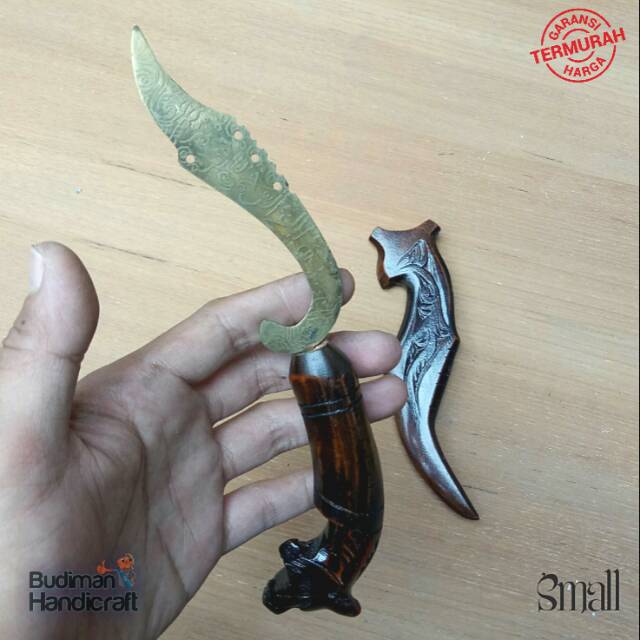 Kujang Kuningan Motif Kaligrafi Arab dengan Gagang Ukiran Kepala Macan.Deskripsi Produk :-Bahan Kuningan & Kayu Rasamala ,-Panjang Full : 27cm ,-Panjang Bilah Kuningan : 11,5cm,-Panjang Gagang : 11cm ,Cocok untuk menambah koleksi antik / pajangan di rumah anda sehingga menambah kesan Etnik .Maupun dijadikan Souvenir untuk Kolega an